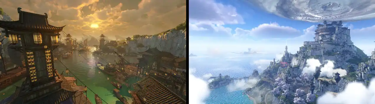本アップデートでは、新たな探索エリアとして海上マップ「東極海」と、海に浮かぶ神秘の孤島「鏡天閣」が登場します。東極海は、『逆水寒』初となる海上を舞台とした新マップで、雷鳴が鳴り響く海域にプレイヤーは船で諸島を巡りながら新たな探索要素やギミックに挑むことができます。また、海の孤島「鏡天閣」も新たに登場。まるで鏡花水月のような幻想的な世界観の中で、新たな冒険がプレイヤーを待ち受けています。 |