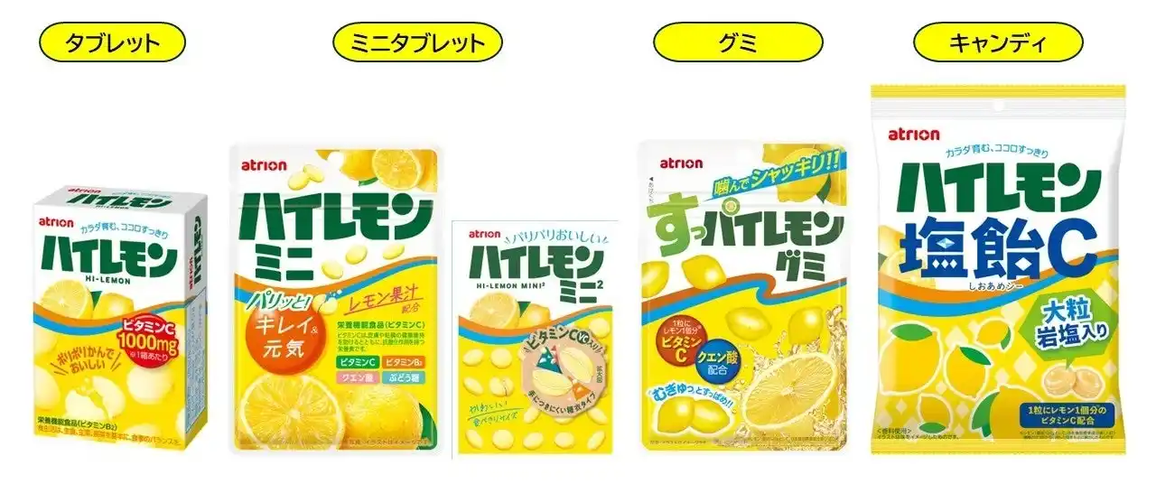 40年を超える歴史の中で、近年は多彩なラインナップを展開。パリパリ食感が楽しいミニタブレット「ハイレモン ミニ」や、塩分補給に優れた「ハイレモン塩飴C」(春夏限定)に加え、今回新たに「すっパイレモングミ」が加わりました。これからも、変わらぬ美味しさと時代のニーズに合わせたラインナップで皆様の健康と笑顔を応援します。 |