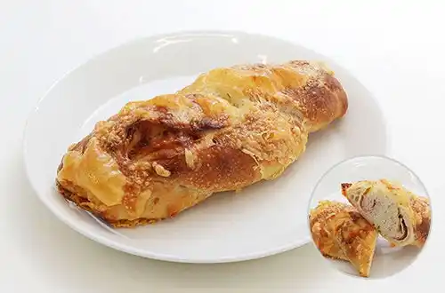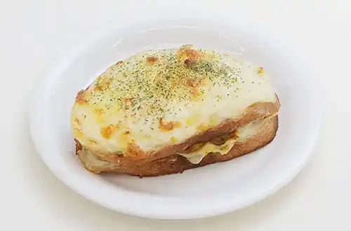 中にはベビーホタテとマッシュルーム。コクのあるチーズソースで仕上げたフルニエさん秘伝のクロックムッシュ。 |