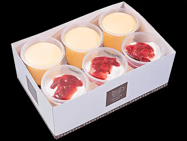 人気の「プレミアムプリン」と「いちご練乳の杏仁豆腐」をセットにした満足BOX。手土産や家族団らんにぴったりで、単品で購入するより100円(税込)お得な商品です。ちょっとした集まりにも嬉しい逸品です。 |