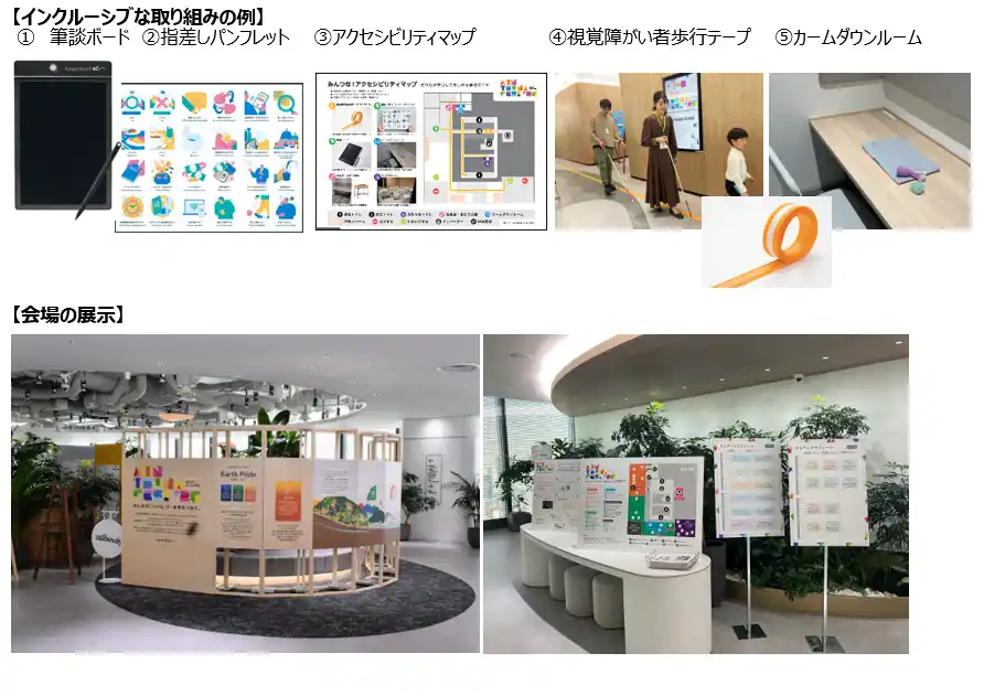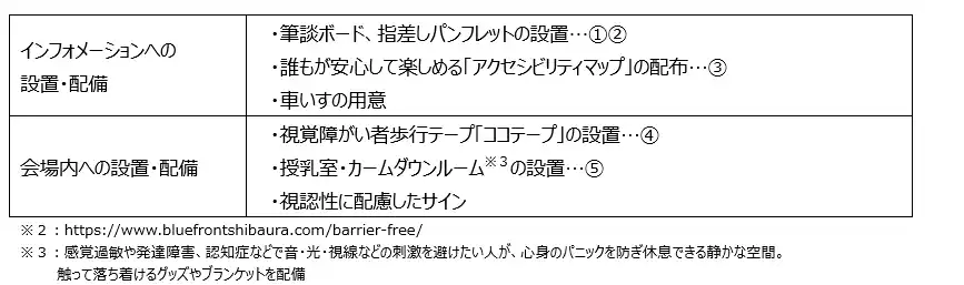 本イベントには多様な方が来場することを想定し、お子様連れの方や障がいを持った方などにも安心して過ごしていただけるよう会場づくり・運営を行いました。あわせて会場へのアクセスについて障がいのある方が来館される際に役立つ「アクセシビリティ・マップ※2」を公開しております。 |