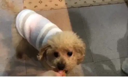 「ワンデリシャス」が生まれたきっかけは、病気のわんちゃん(左写真)の飼い主さんの悩みを聞いたことでした。だんだん食欲が落ち、薬も口にしなくなってしまったそのわんちゃん。もともと人間用のパンが好きだったことから、飼い主さんは人間用のパンと一緒に薬をあげようと考えましたが、健康面の不安から断念。代わりに犬用のパンに薬を挟んで与えてみましたが、うまくいかなかったそうです。 |