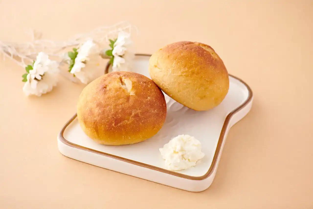 主な生地のベースとして(1)国産小麦と全粒粉(2)オーガニックココナッツシュガー(3)酵豆粉(食塩不使用の大豆発酵調味料)(4)太白胡麻油を採用。「プレミアムロール プレーン(通常サイズ)」は1個当たりの塩分量が約0.1g(通常の食パンは1枚あたり約0.6g~0.8g)と、塩分を少なめにしながらも、おいしいパンの味わいが楽しめます。 |