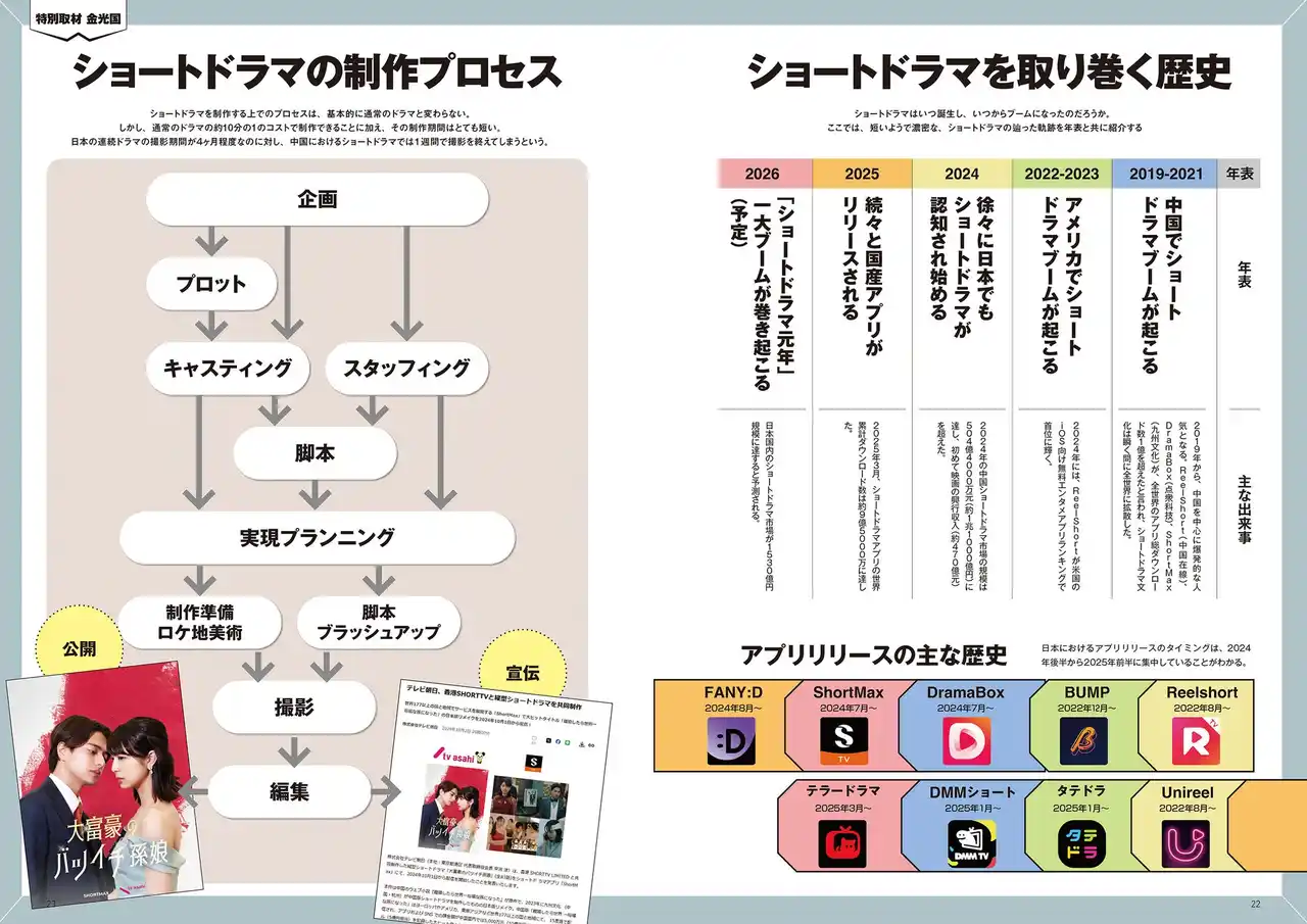 本書は、急成長するショートドラマ市場の全貌を初めて体系的にまとめた“日本初”の新時代のドラマ専門誌です。 |
