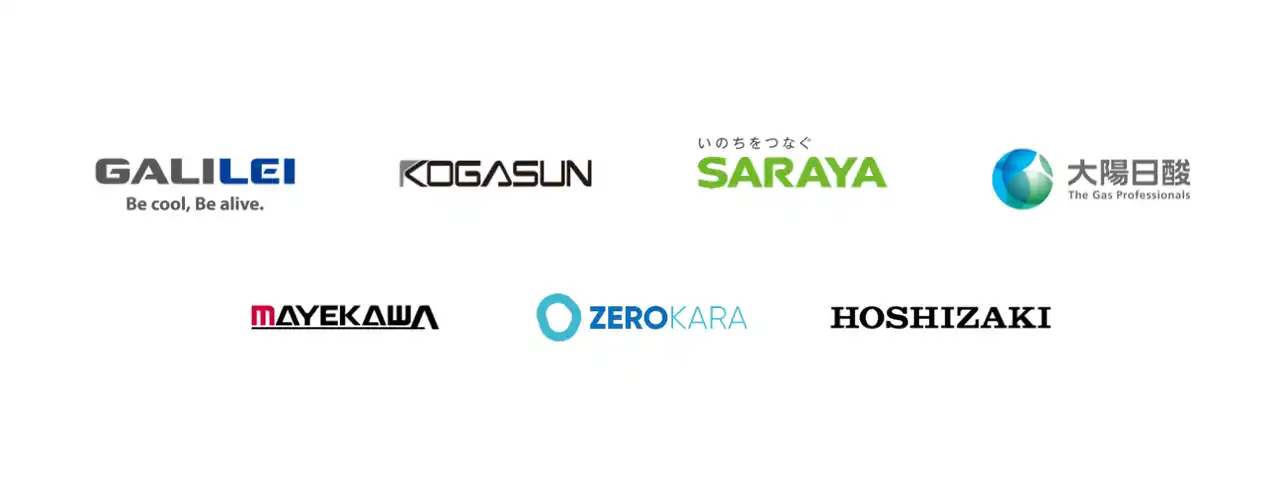 フクシマガリレイ株式会社、タカハシガリレイ株式会社、株式会社コガサン、サラヤ株式会社、大陽日酸株式会社、株式会社前川製作所、株式会社ゼロカラ、ホシザキ株式会社(順不同) |