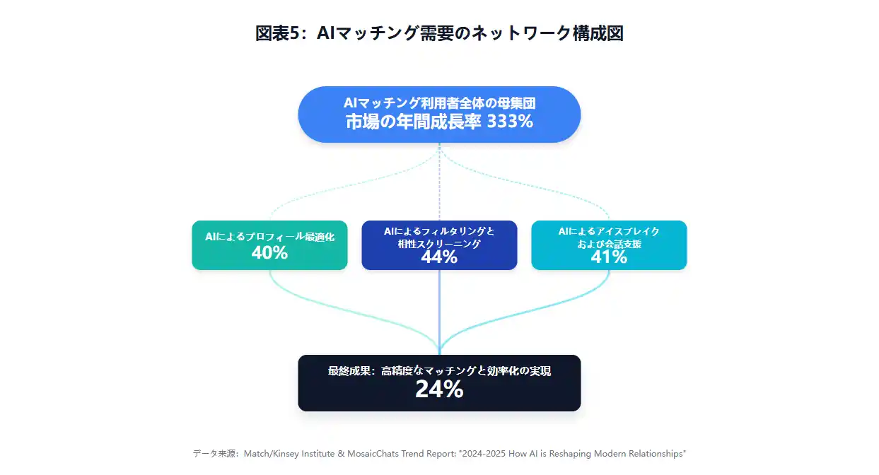 | Match/Kinsey Institute & MosaicChats Trend Report: "2024-2025 How AI is Reshaping Modern Relationships" (マッチングアプリ分野におけるAI利用率333%増のトレンド調査) | ||||||