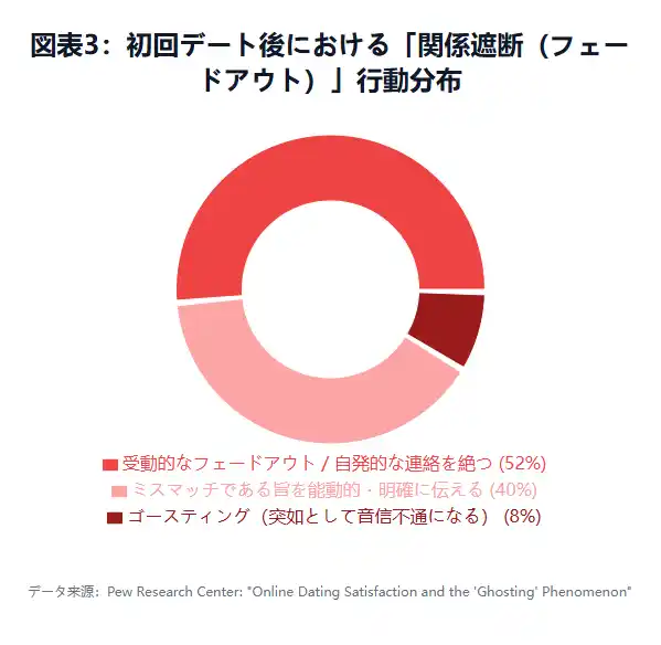 | Pew Research Center: "Online Dating Satisfaction and the 'Ghosting' Phenomenon" (オンラインデーティングの満足度および「ゴースティング(音信不通)」現象に関する追跡調査) | ||||||