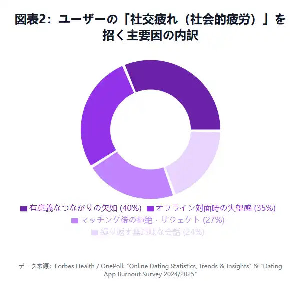 | Forbes Health / OnePoll: "Online Dating Statistics, Trends & Insights" & "Dating App Burnout Survey 2024/2025" (マッチングアプリ利用者の燃え尽き症候群/疲労度に関する統計) | ||||||