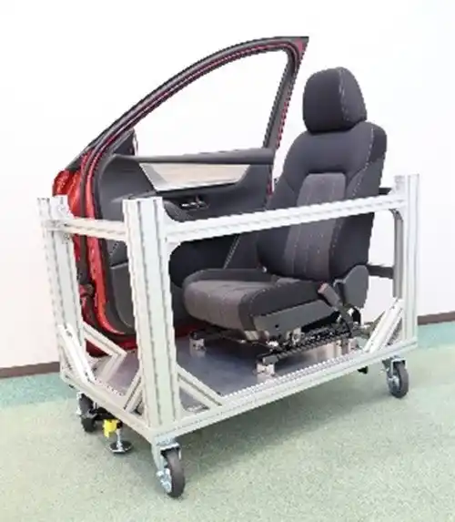 今回は、ドライバーに向けた啓発として道路冠水時のドアにかかる水圧を体感できる「道路冠水時水圧体験ドア(通称:冠水ドア)」を展示します。この体験装置は、JAF広島支部とマツダが連携して制作したもので、水深約60cmの冠水時にドアを開けようとした際の重さを安全に体験できます。 |
