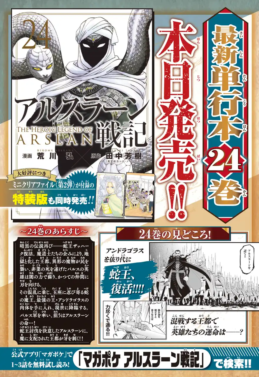 『アルスラーン戦記』が最新24巻発売を記念して、センターカラーで登場! |