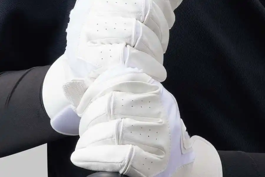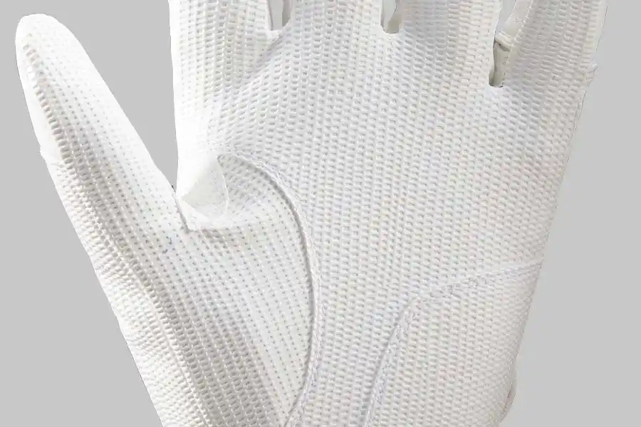 中指~小指を3Dパターンにより立体縫製することで自然なバットグリップが可能。 |