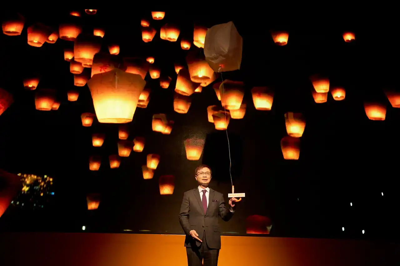 会見は、台湾の文化を象徴するランタンの演出でスタート。 |