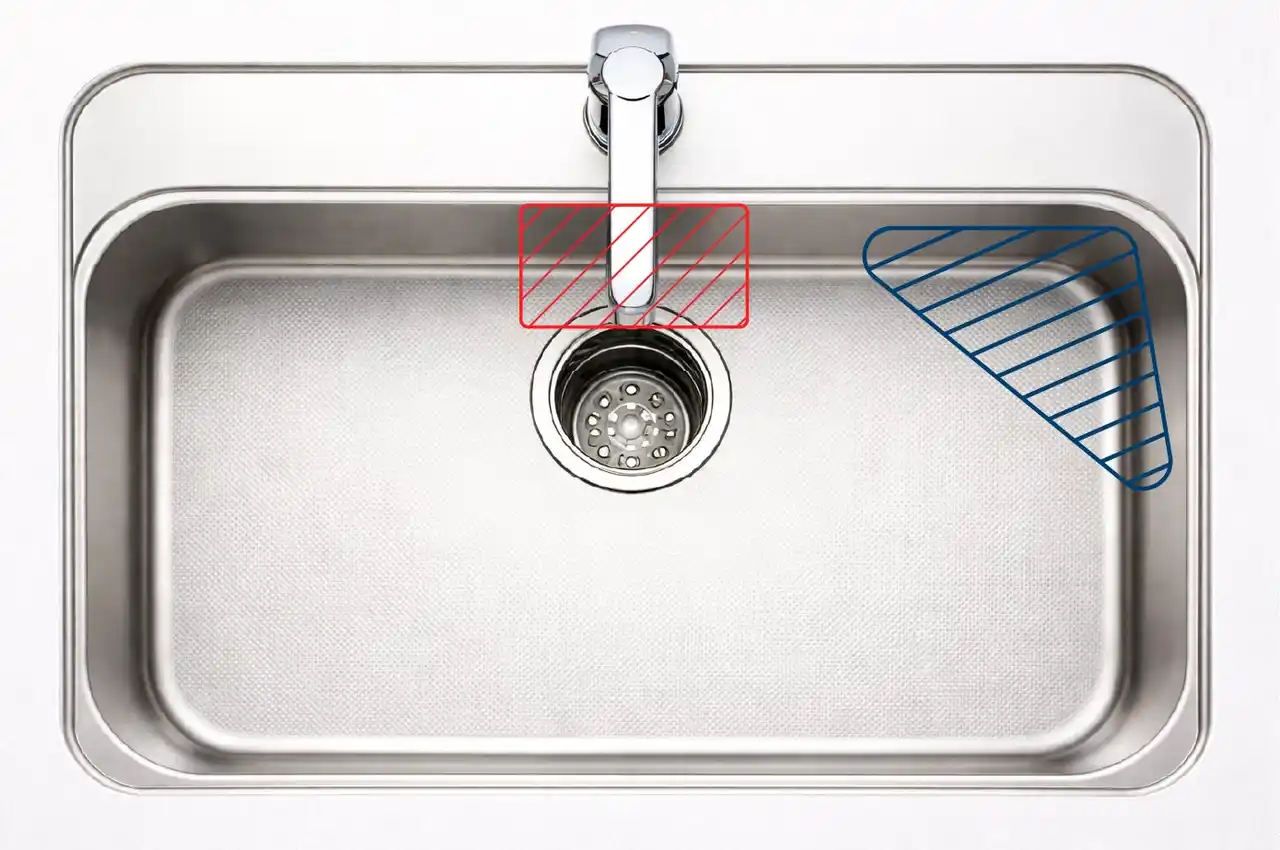 | 三角コーナーは便利な反面、シンクの中で場所を取り、水が溜まりやすく、ぬめりが出やすい存在でもあります。 | ||||||||||||||