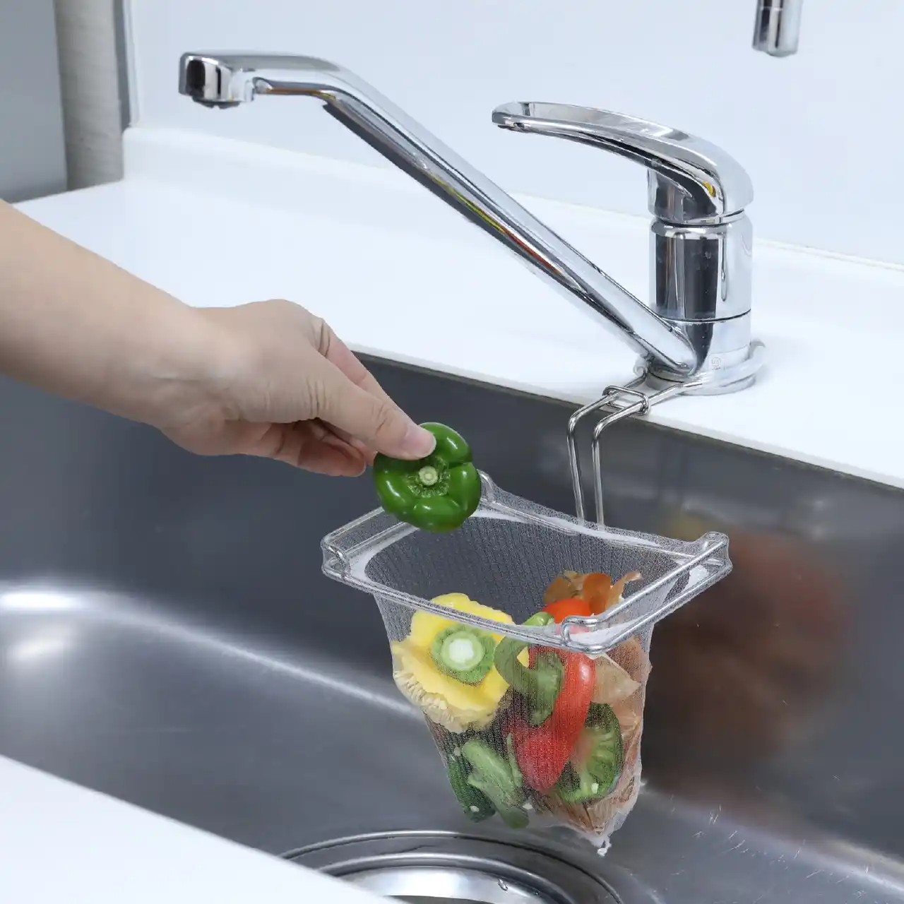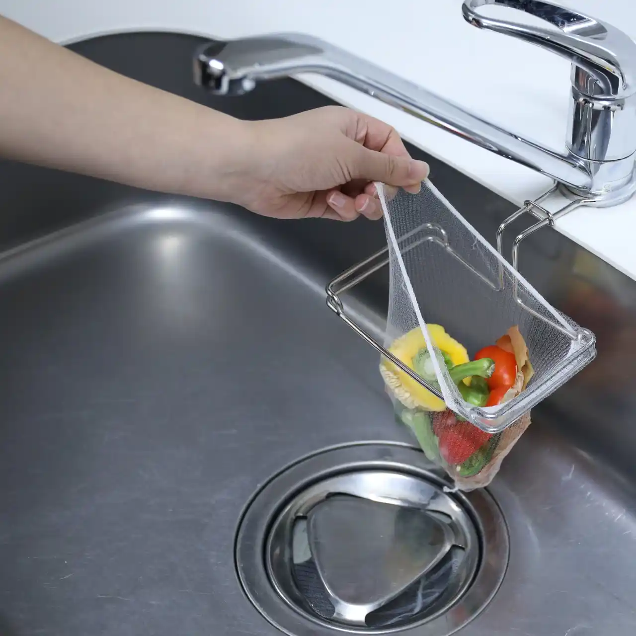ネットはゴミの重みで自然に下へ伸びるため、 食材くずも溜まりやすく、まとめて処理できます。 |