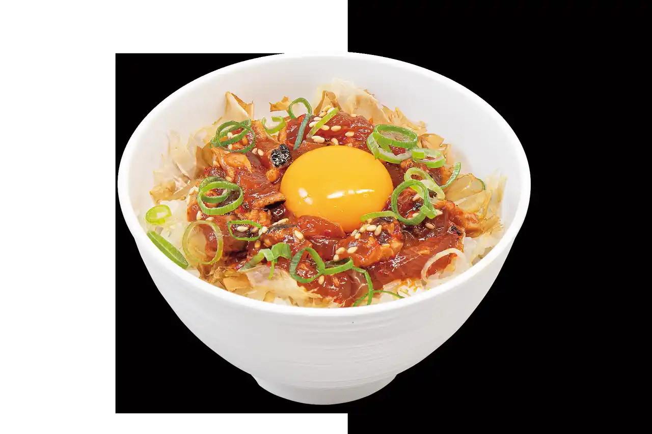 鰹ユッケに黄身をたっぷり絡めて召し上がれ。濃厚なコクと鰹の風味が広がる丼です。 |
