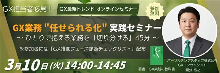 | 総合人材サービスのパーソルグループで人材派遣・アウトソーシング事業を手掛けるパーソルテンプスタッフ株式会社(本社: 東京都渋谷区、代表取締役社長: 木村 和成、以下パーソルテンプスタッフ)は、企業におけるGX(グリーン・トランスフォーメーション)およびSX(サステナビリティ・トランスフォーメーション)の推進業務を専門に担う新組織「GX/SX推進室」を、2026年4月1日付で新設することをお知らせします。 | ||||||||||