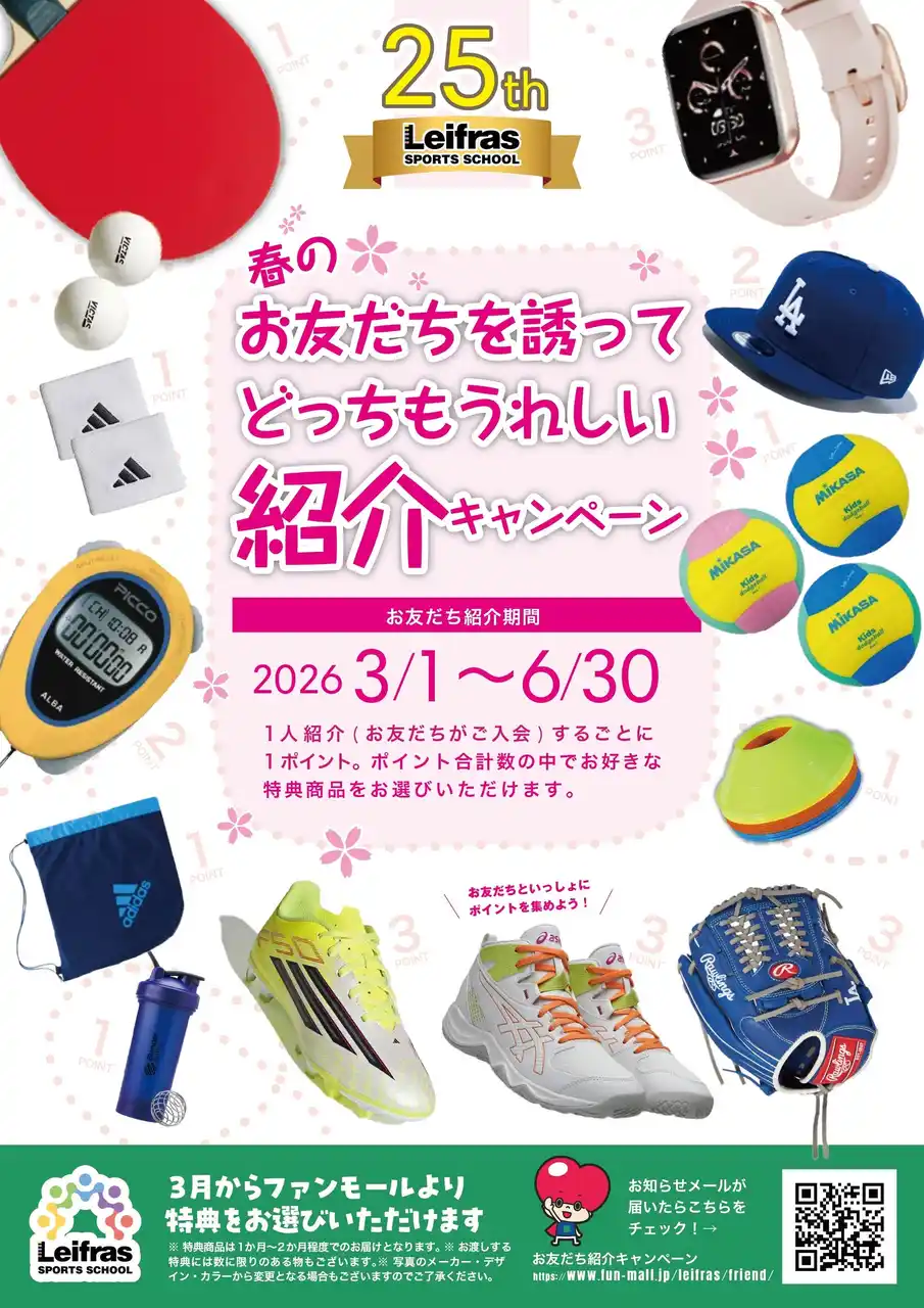 子ども向けスポーツスクールの運営や部活動地域展開支援などを行うリーフラス株式会社(LEIFRAS CO.,LTD.、Nasdaq:LFS、本社:東京都渋谷区、代表取締役CEO:伊藤 清隆)は、現在リーフラススポーツスクールで実施中の「どっちを選ぶ?春トクキャンペーン」をパワーアップさせた「春トクトクキャンペーン」を開始したことをお知らせいたします。 |