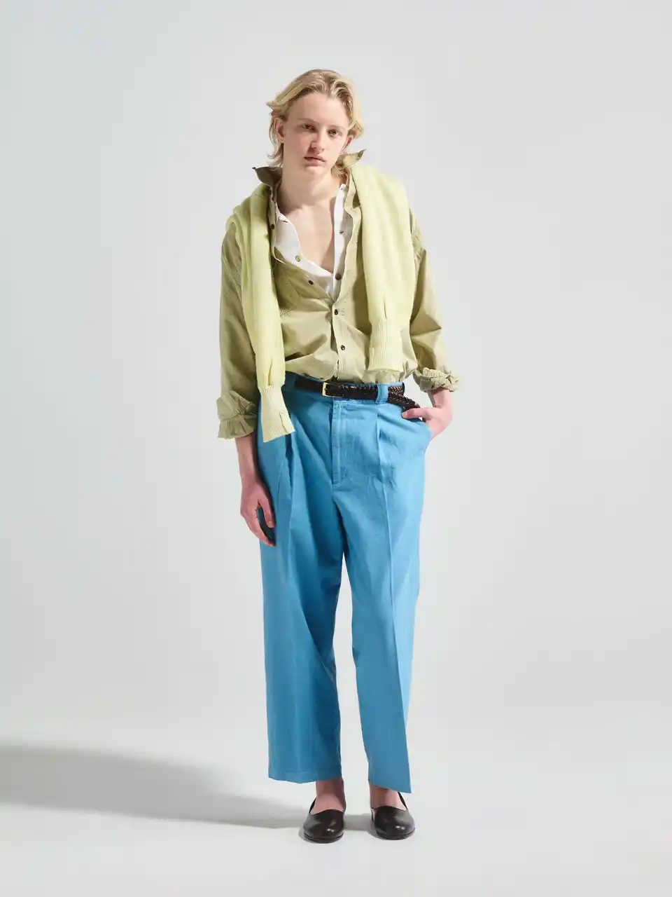 さらに、センタープレスはそのままに腰元へフロントタックを加えることで品格のある“大人の余裕”を表現。 |