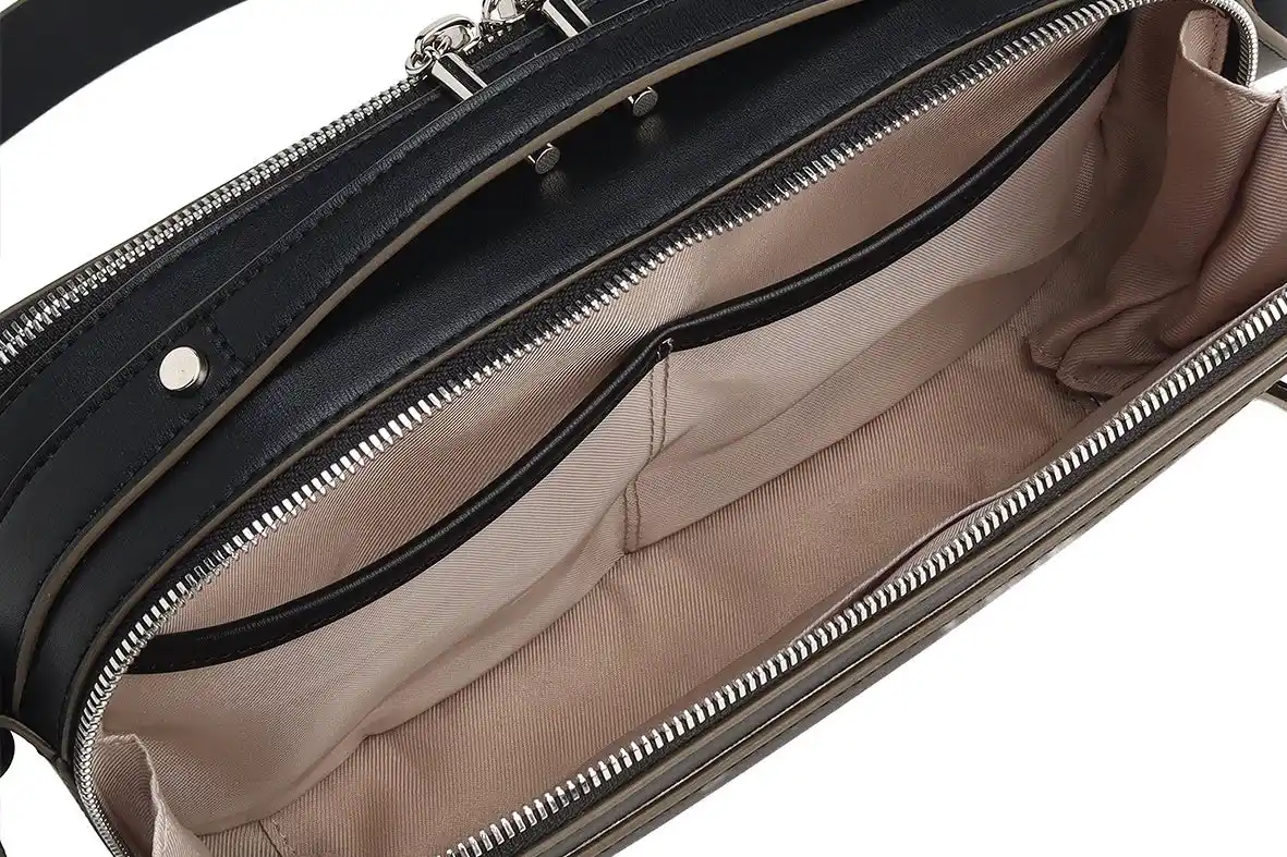 4.メイン収納は2 スペース仕様で、荷物を仕分けやすく、整理整頓を快適にします。内装にはDカンを備え、チャームやキーホルダーを取り付けられます。 |