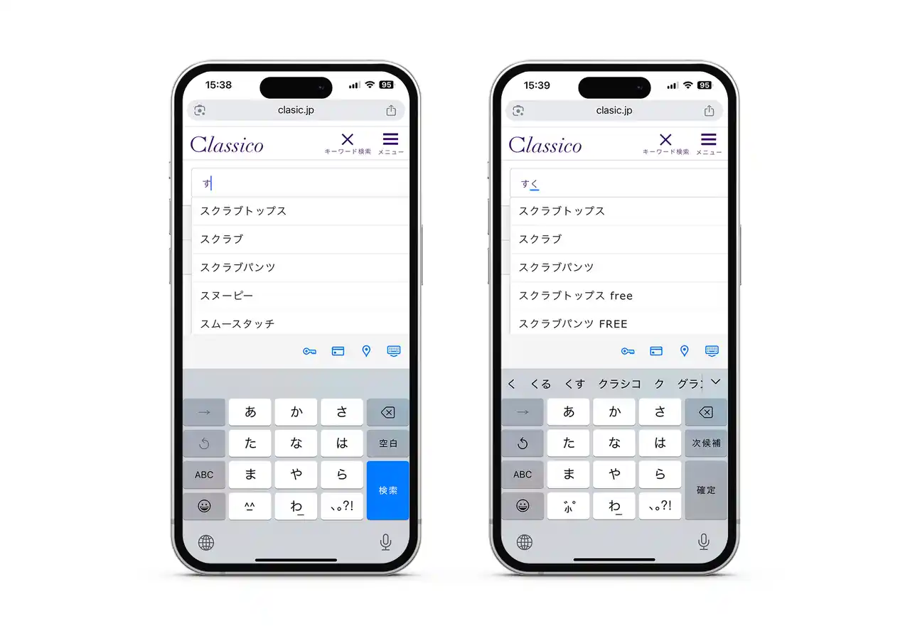 | クラシコ様が提供する、モチベーションを高める高品質なメディカルアパレルを、より多くの方が簡単に見つけられるよう、ユニサーチは「検索」の側面から強力にバックアップいたします。ユニバーサルナレッジは今後も、ECサイト運営企業様が抱える課題を解決し、その先のお客様の利便性向上に貢献する、価値ある検索サービスの提供に尽力してまいります。 | |||||||||