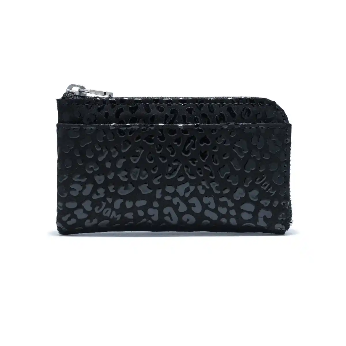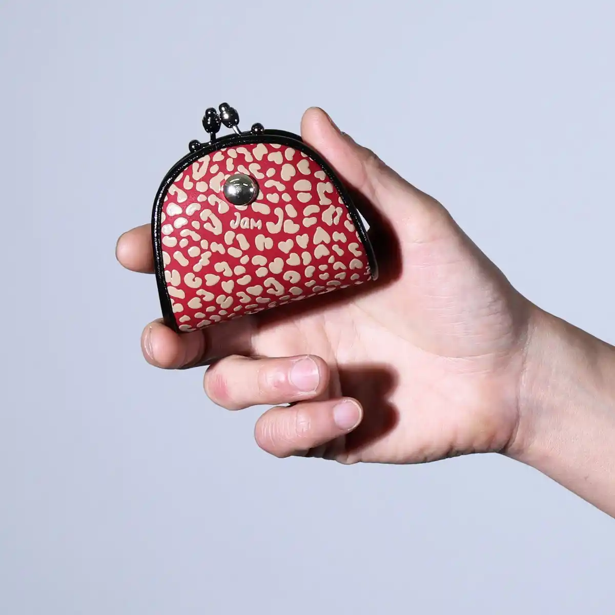 の活動名で知られるカールステン・ニコライと協業した伝説的な空間を起点とするパターン。2つ目の柄は、最初期に人気を博したパンチング加工を印伝で再解釈した「DOT(ドット)柄」、3つ目の柄は、ジャム瓶のチェックと千駄ヶ谷に根ざした将棋盤を掛け合わせた「GINJAMCHECK(ギンジャムチェック)柄」、4つ目の柄は、JAM=押しつぶす。という思想から生まれた、何層にも重ねたマテリアルの実験「JAMNIMAL(レオパード)柄」、5つ目の柄は、これまでの柄をパッチワーク状に再構成し、印伝発祥の地・山梨県の形状を忍ばせた「CAMOUFLAGE(カモフラージュ)柄」。その中から今回の新作に抜擢したのは、老若男女から人気の高い「JAMNIMAL(レオパード)柄」。 |