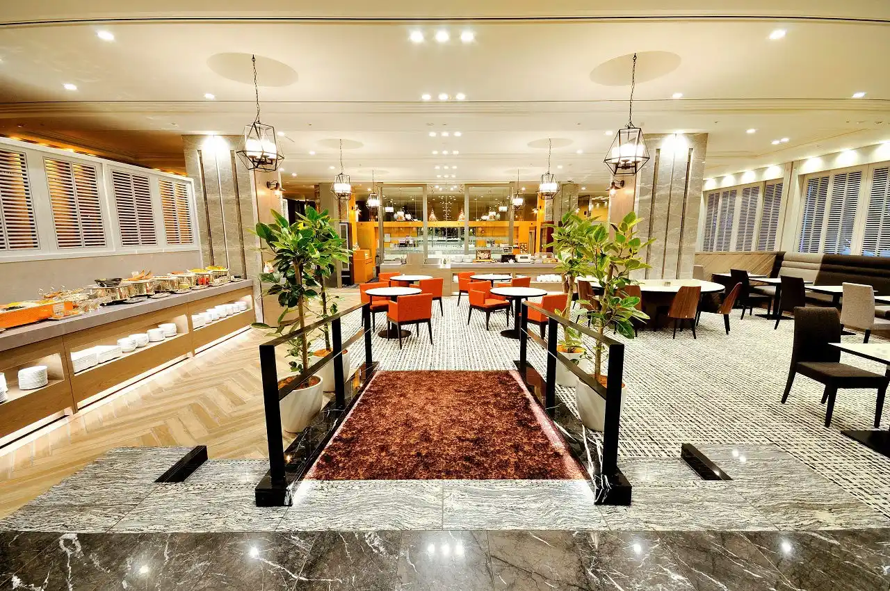 | 桜が咲く空間で味わう和食はお祝いや接待に最適。春素材たっぷりのホテルバイキングも開催中。 |