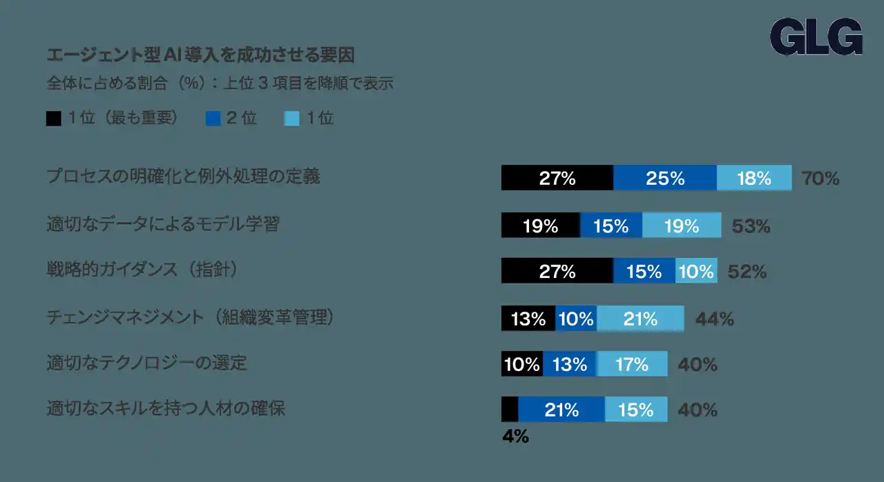 世界最大級のインサイト・ネットワークである、株式会社Gerson Lehrman Group(本社:東京都港区、以下GLG)は、自社でエージェント型AIソリューションの導入・管理を担当する世界各国のシニアビジネスリーダー100名を対象とした調査レポート「エージェント型AI 実践プレイブック:AIの価値創造を再定義する100名のリーダーからの戦略的インサイト」(原題:Agentic AI playbook)を発表いたしました。