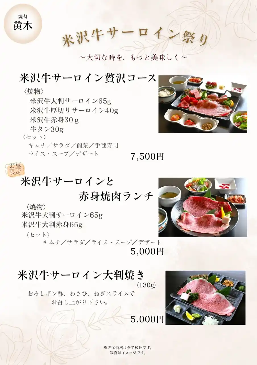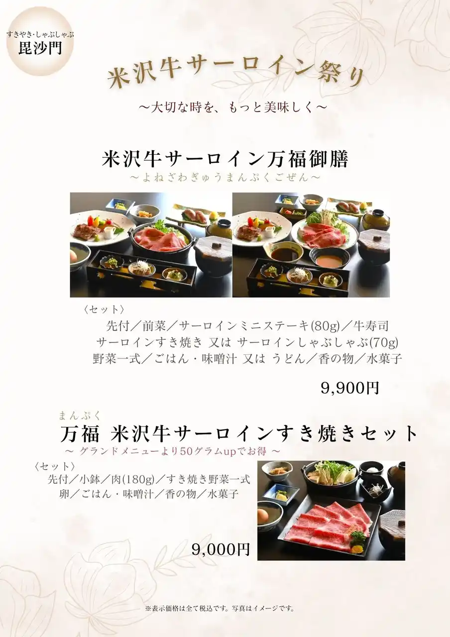 | 8月31日までの期間限定で、米沢牛のサーロインを使用したメニューを、焼肉、すき焼き、しゃぶしゃぶ、ステーキでご堪能いただけます。「サーロイン大判シェアステーキ」は必見です! | ||||||||||||||||