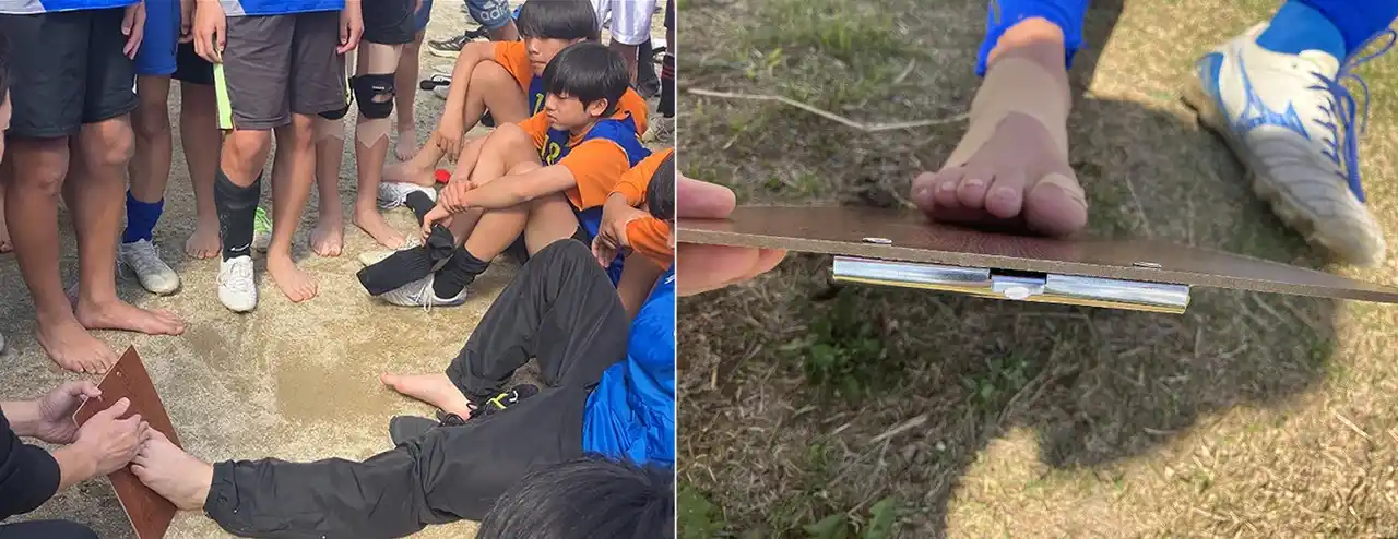 2025年4月、千葉県柏市・逆井運動場にて、地域のジュニアサッカークラブ「エクサス松戸」の中学2・3年生47名を対象に、柔道整復師 上山和俊(千葉県松戸市在住)が足の健康チェックを実施。その結果、 |