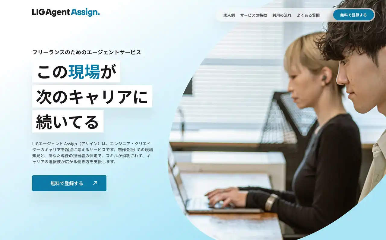 株式会社LIG(本社:東京都台東区、代表取締役社長:大山 智弘)は、2026年3月、フリーランスのクリエイター・エンジニアに特化したエージェントサービス「LIG Agent Assign(リグエージェント アサイン)」をリリースしました。 |