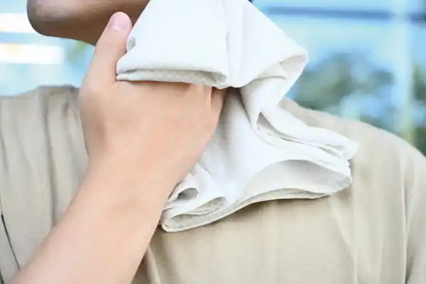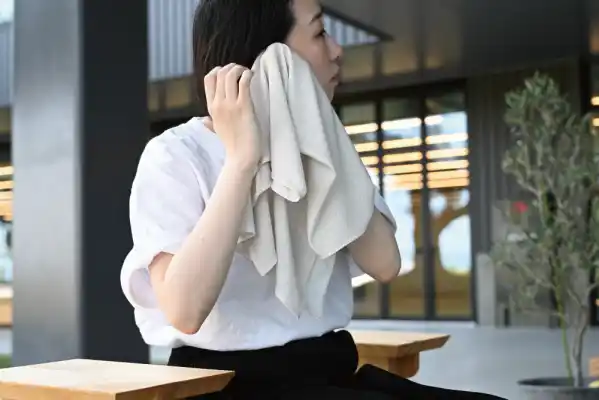 ひんやり感で火照った体をクールダウンできるのはもちろん、お風呂あがりに全身をしっかり拭けるのに、たたむとハンカチサイズになる絶妙なサイズ感で使い勝手は抜群。首に巻いたり、頭に巻いたり、1枚でハンドタオルや手ぬぐいの役割まで果たします。さらに、吸水速乾、抗菌・防臭機能というハイスペックな機能性も併せ持ちながら、わずか51gという軽さも魅力です。