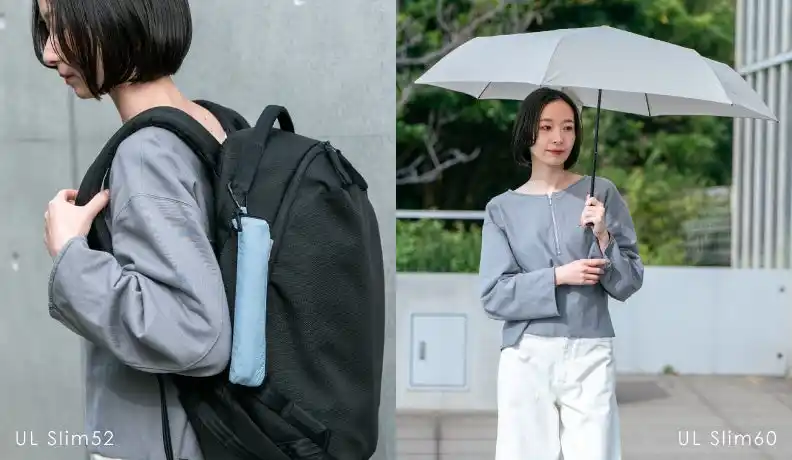 どちらも軽量でスリムな設計のため、バッグの中でもかさばらず、持ち運びの負担を軽減します。通勤・通学や外出時はもちろん、旅行先やアクティブなシーンでも扱いやすい実用性を備えています。またハンドルには夜間の視認性を高めるリフレクター付きゴムバンドを装備。 カラーはそれぞれ「Black」「Gray Morn (グレーモーン)」「Dusty Blue」の落ち着きのある3色をラインアップ。シンプルで使いやすい「Black」と「Gray Morn」、爽やかな印象の「Dusty Blue」は、日常のスタイルにも自然に馴染みます。性別や年齢を問わず選びやすいカラー展開もポイントです。 軽さとスリムさを兼ね備え、持ち運びやすさに配慮した「ウルトラライトシリーズ」。日常から外出先まで、幅広いシーンでスマートに活躍するおすすめのモデルです。 |