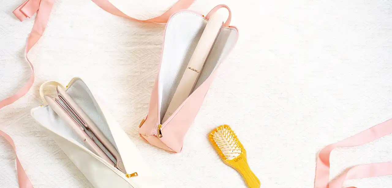 | いつでもどこでも、より気軽に「リナ ストレートアイロン」をお使いいただきたい想いから、この度、夏のお出かけシーンにあわせて、保管にも持ち歩きにも使用できるヘアアイロンポーチとセットにした「Lenaトラベルセット」の期間限定販売を決定いたしました。 | |||