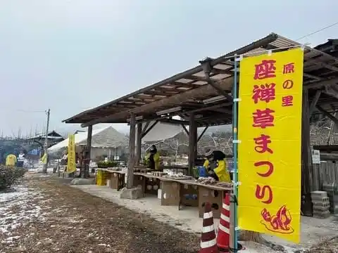 座禅草まつり開催期間中は、豚汁のふるまい、肉まん、地元野菜・果物の販売、加工品の販売などを行います。 |