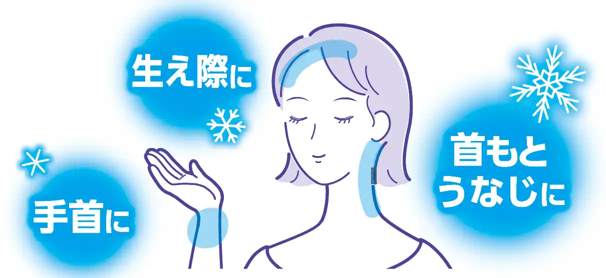 首元・うなじ・生え際など、汗がにじむところにコロコロするだけでひんやり感が続きます。 |