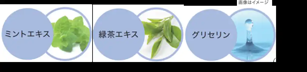 ミントエキスはセイヨウハッカ葉エキス、緑茶エキスはチャ葉エキスです。 |
