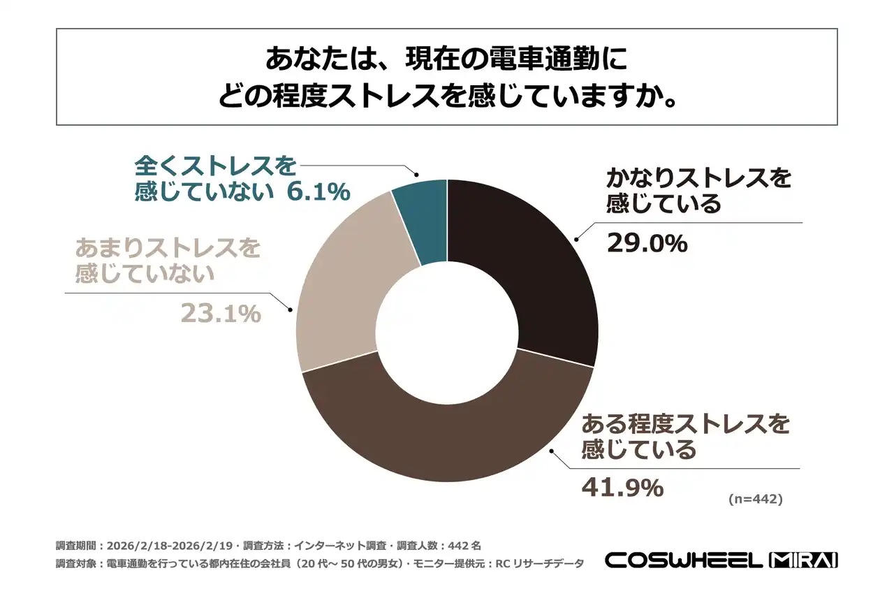 株式会社Acalie(本社:愛知県名古屋市、代表取締役:中友 孟涛)が展開する「COSWHEEL」は、電車通勤を行っている都内在住の会社員(20代~50代の男女)を対象に「ビジネスパーソンの通勤手段に関する調査」を実施しました。この調査から、電車通勤を行っている都内在住の会社員の通勤におけるストレスの実態や、電車以外の通勤手段への意向、そして代替手段を選ぶ際に重視することなどが明らかになりました。