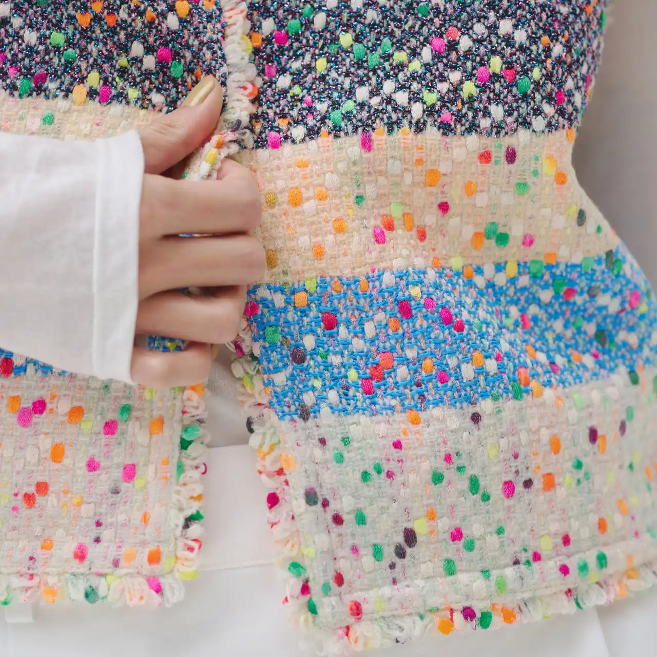 株式会社ヘラルボニー(本社:岩手県盛岡市、代表取締役 Co-CEO:松田 崇弥、松田 文登、以下「ヘラルボニー」)は、株式会社日本ホームスパン(本社:岩手県花巻市、代表取締役社長:菊池久範、以下「日本ホームスパン」)、社会福祉法人光林会るんびにい美術館(所在地:岩手県花巻市、以下「るんびにい美術館」)と、さをり織りの手法を用いたコラボレーション製品「ツイードジレ〈Textile Artwork by Yoshiko〉」と「ツイードクラッチバッグ〈Textile Artwork by Yoshiko〉」を3月10日(火)よりHERALBONY ISAI PARK(岩手県盛岡)、HERALBONY LABORATORY GINZA(東京都銀座)の2店舗とHERALBONY公式オンラインストアにて数量限定で販売いたします。 |