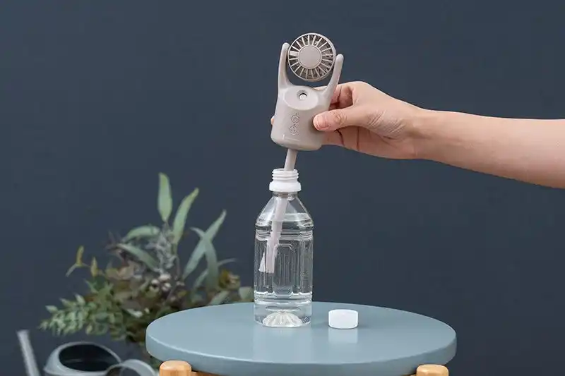 ペットボトルにも挿せるミストハンディファン |