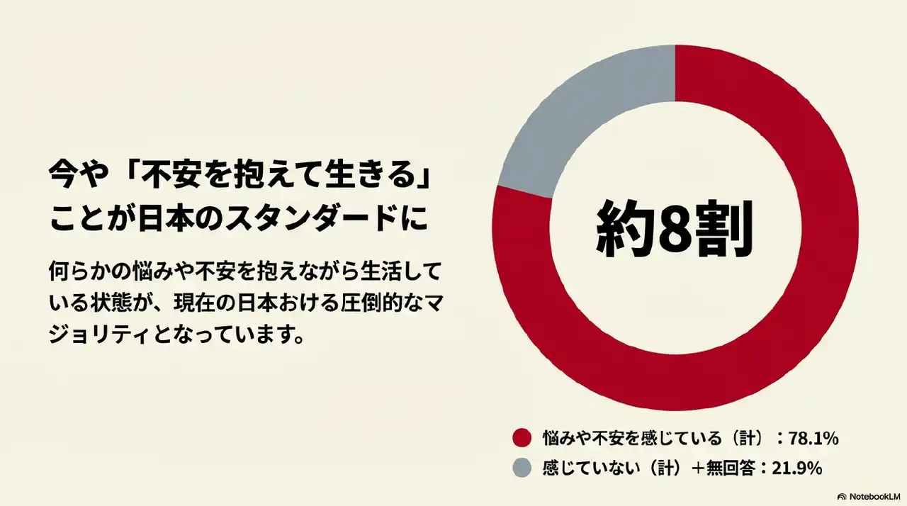 1. 国民の約8割(78.1%)が日常生活に「悩みや不安」を抱えている |