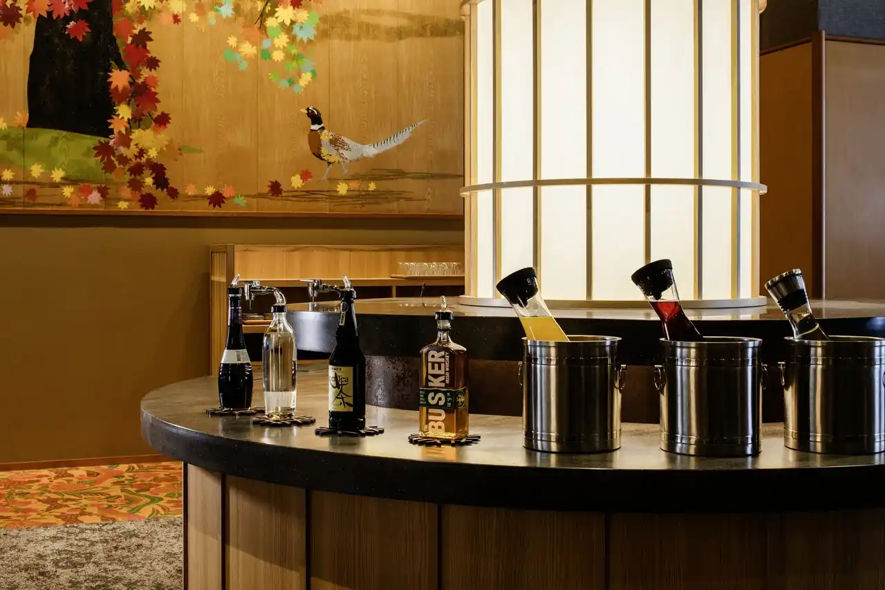 挽きたてのコーヒーやソフトドリンクに加え、アルコールには様々なリキュールもご用意。炭酸水サーバーを活用して、ご自身でアレンジする「自分仕立てのカクテル」を愉しめるのも魅力です。湯上がりの一杯や、食後のリラックスタイムに最適な一杯を。 |