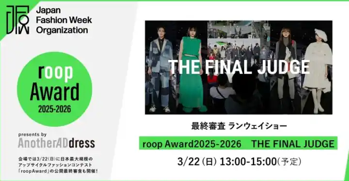 大丸松坂屋百貨店が運営するファッションサブスクリプションサービス “AnotherADdress(アナザーアドレス)” が主催する、ファッションデザインコンテスト『roop Award 2025-2026』の審査員が決定 しました。最終審査・授賞式は、ファッションイベント「Rakuten Fashion Week TOKYO」関連イベントとして、渋谷ヒカリエにて2026年3月22日(日) に開催します。 |