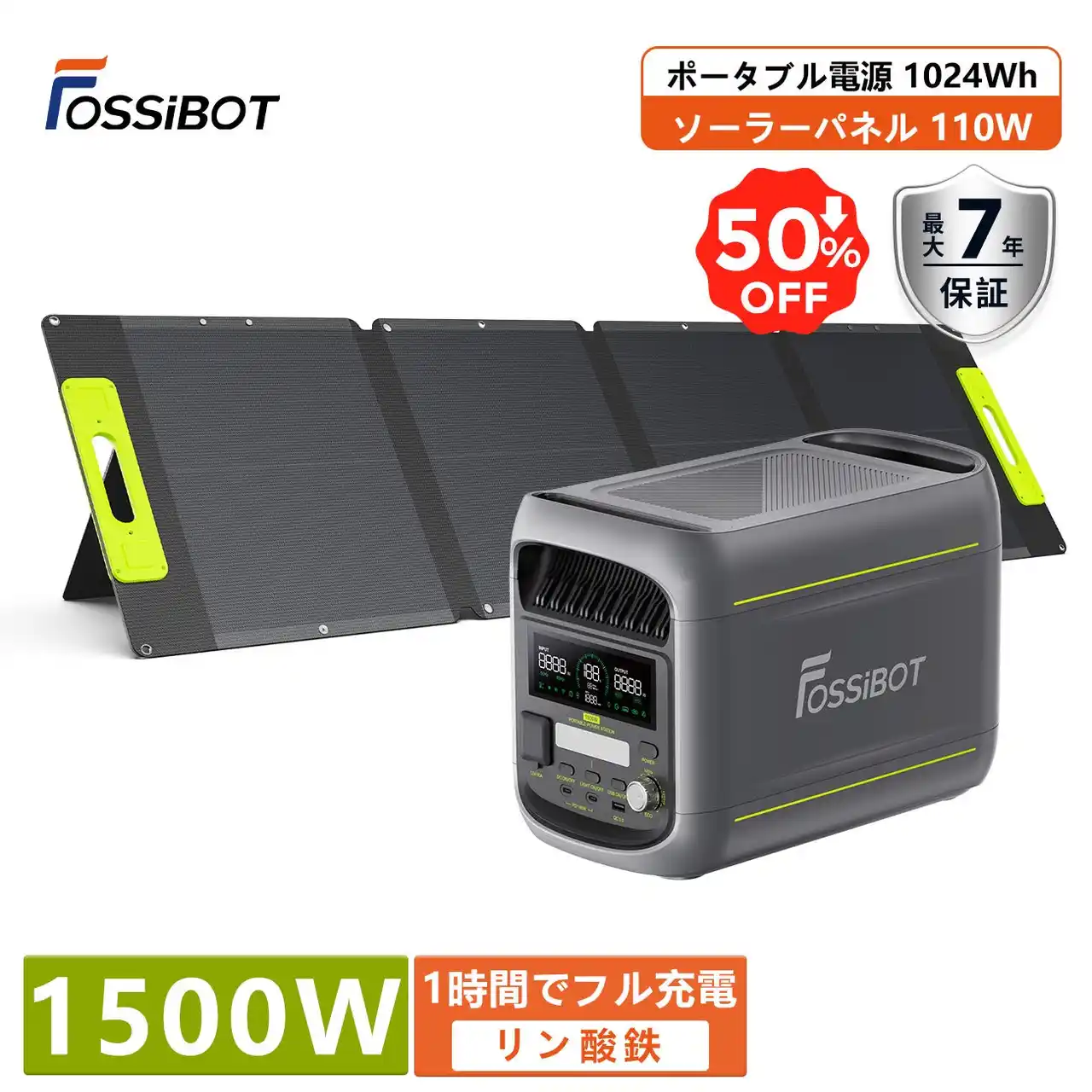 2026年新発売★【50%OFF】FOSSiBOT ポータブル電源F1800+ソーラーパネル110W セット |