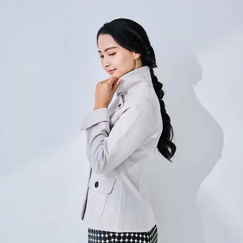 テーラード風シルエットで、ビジネス、学校行事、式典など、きちんとした場でも自然に着られる上品なデザインです。軽くて柔らかいので、長時間の着用でも疲れにくく、肌に優しいストレスフリーな着用感を得られます。シワになりにくく型崩れしにくいので、必要なときにサッと羽織れます。 |