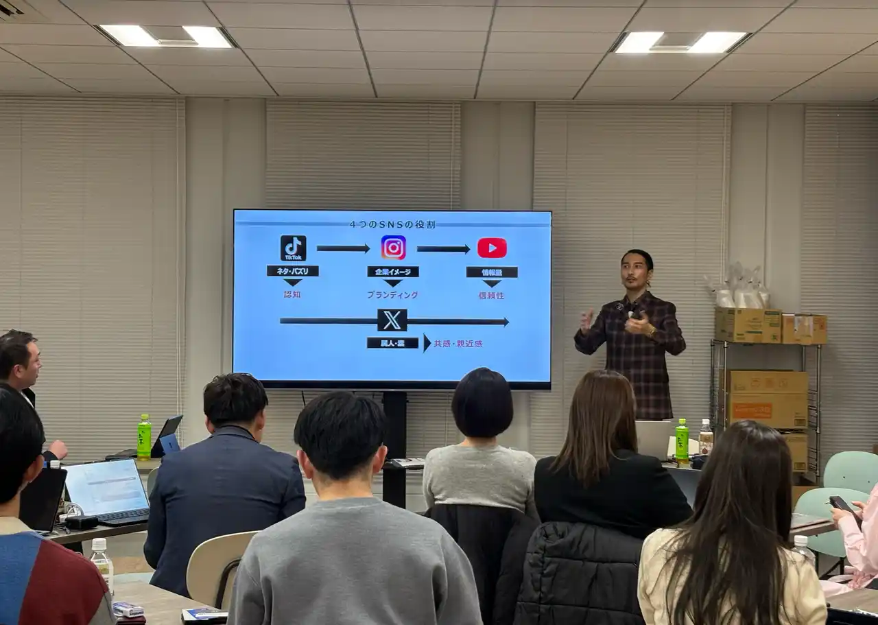 講演では、単なるフォロワー増加のテクニックに留まらず、企業の利益と採用に直結する「出口戦略」から逆算した運用法について、以下のトピックを中心に解説しました。 |