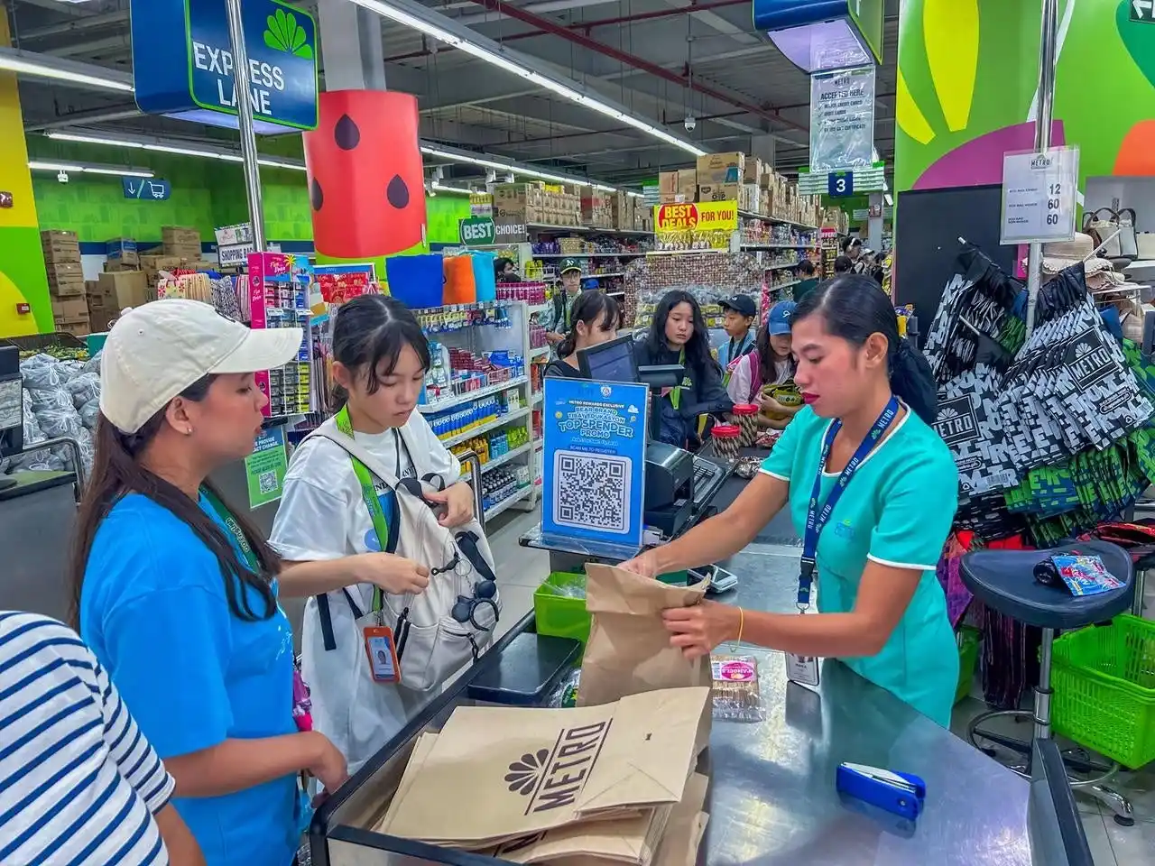 スーパーで英語でお買い物をする参加者の様子 |