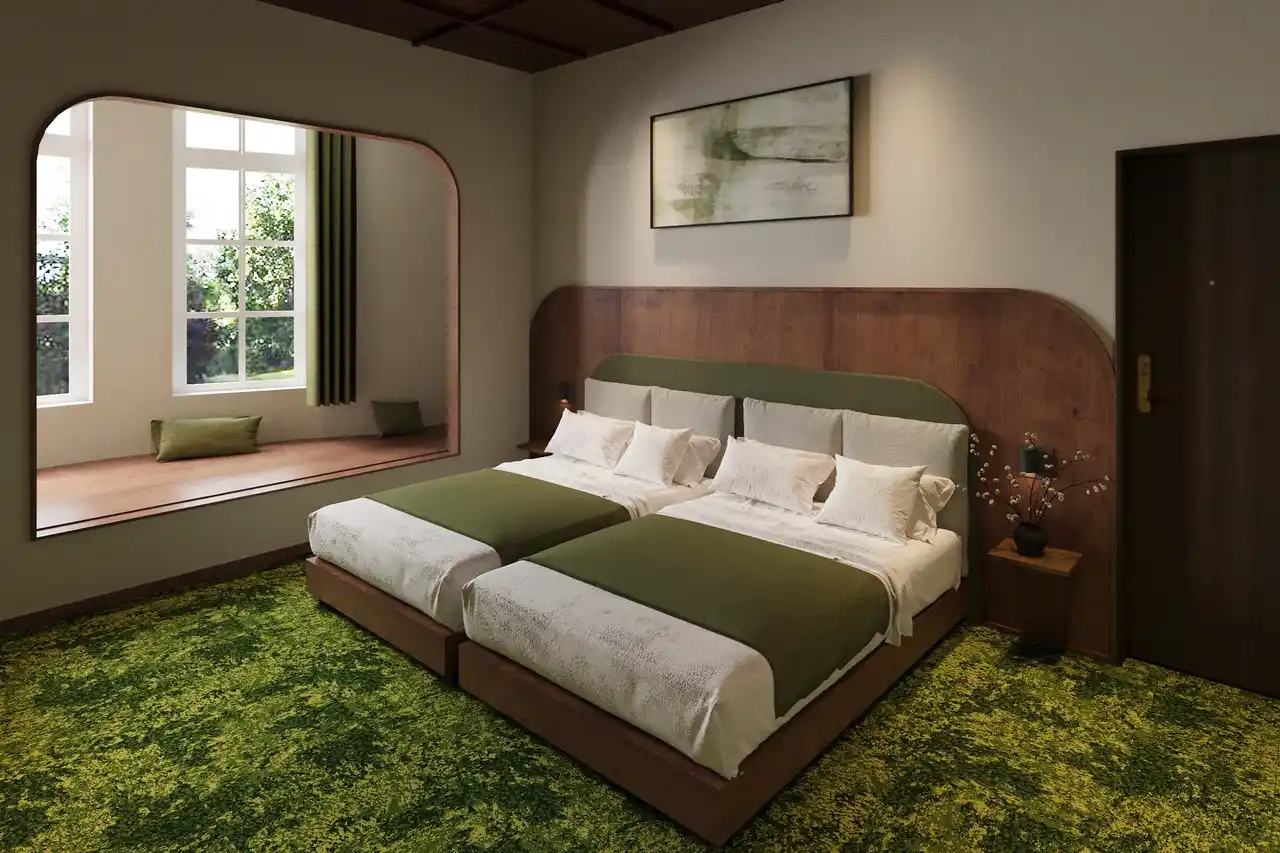 | 2階は、全5室の部屋ごとにコンセプトが異なるホテル。2024年グッドデザイン賞受賞チームにより、函館を象徴する風景を「色」として抽象化し、まちの色を静かに味わえる内装デザインとなっています。 | |||||||||||||||||||