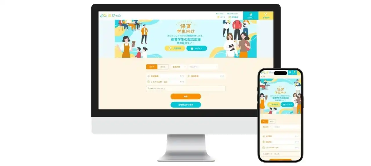 園ぴったについて 保育士や幼稚園教諭、児童指導員など保育業界での就職を目指す新卒学生向けの就活応援サイト。新卒求人だけでなく、アルバイト・ボランティアや実習生の受け入れ情報など、在学生にも役立つ幅広い情報を掲載しています。全国すべてのエリアに対応しており、Uターン・Iターン就職にも活用が可能。さまざまな保育施設からのスカウトが届き、チャットでそのままやりとりできるため、手軽に多角的な情報収集ができます。 |