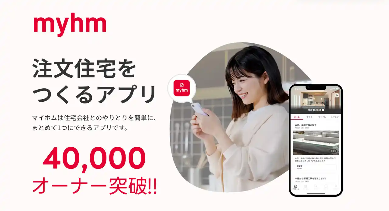 | 『マイホームアプリ』Google、Yahoo!検索ナンバーワン。ご利用マイホーム4万棟突破(※2026年3月時点)の、お施主様の家づくり体験を向上させる、住宅会社とのコミュニケーションアプリです。 | |||||||||||||||||