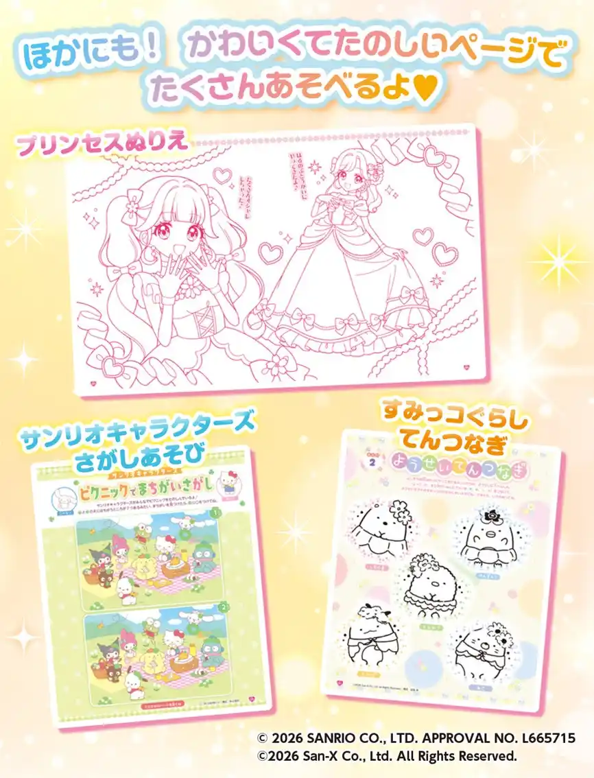 さらに、誌面では豪華なキャラクター企画が盛りだくさん! 「リカちゃん」のコーデ遊びや、「ディズニープリンセス」のシール遊びなど、大人気のきせかえ遊びが充実しています。また、「サンリオキャラクターズ」のピクニックまちがいさがしや、「アニメちいかわ」のはるのめいろまつり、おひめさまの絵が練習できる「オシャレ(ハート)おえかきレッスン」など、時間を忘れて夢中になれる記事が満載です。 |